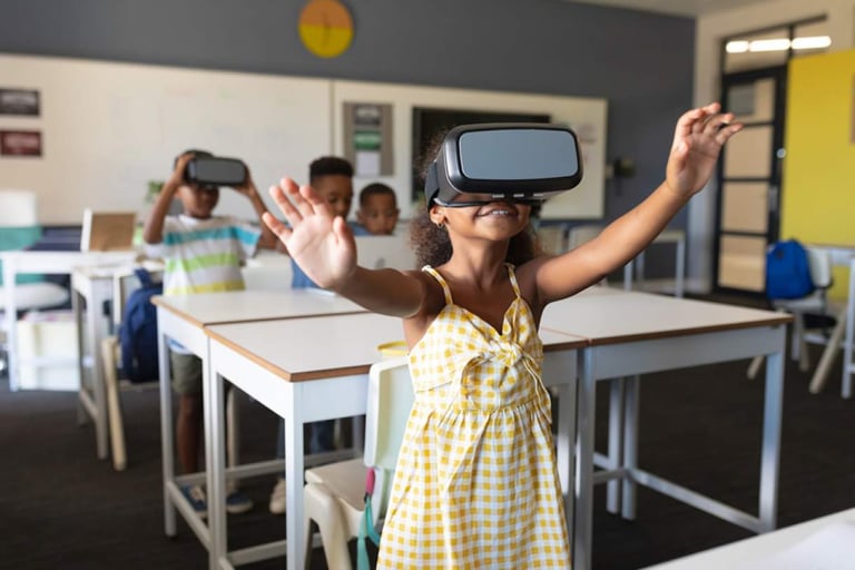 As tecnologias de RV e RA trazem experiências imersivas para a sala de aula, permitindo que os alunos explorem conceitos em um ambiente 3D.
